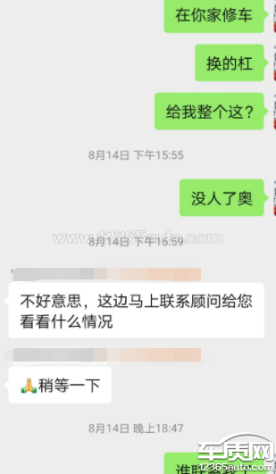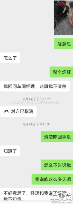 8月7日发生交通事故去丰田4s店修车,修车项目包括更换后保险杠,7月14日车仍然没有修好,我下午两点去店内查看修车状况,我到店后看见的状况为上述图片,几个修车工在给我的所谓新杠上打腻子准备补漆,我当时询问状况是安装时造成损坏,4s店在未告知我的情况下打算在我的新杠上翻新补漆。欺骗消费者,事后4s店告诉我可以为我更换个新杠,可我已经对该店失去信任不想更换只要经济赔偿,店内员工给我打电话态度十分恶劣告知我15天内必须更换,过后不在给我解决。