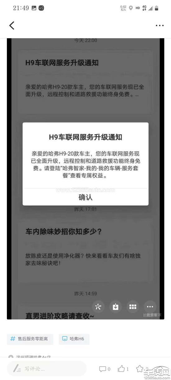 哈弗H6车机远程控制功能变相收费2022-08-27车型:2021款 国潮版 2.0GDIT 自动 冠军版