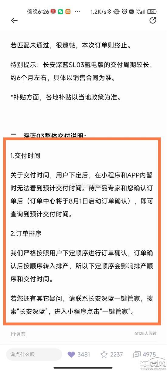 图1是长安深蓝app内发布的公告,虚假宣传,恶意诱导消费者下单后违背承诺且不退订金。7.25日晚20:30,长安发布了深蓝SL03新能源汽车,并公开承诺上市即交付,消费者锁单即可在8月1日看到交付时间,锁单后2000元定金不退(有官方承诺截图为证)。我在7.25日支付了定金,后发现“上市即交付,锁单即显示交付时间”为虚假宣传。长安违约在先,但仍坚持不退订金。另外,官方宣传“严格按照下定时间排序”,在8月29日,长安深蓝app开始显示预计交付时间,经大量预定车主对比,排序绝非严格按照下定时间。图2、3、4为搜集的车主订单情况,下定时间和预计提车时间完全不符合先定先提。图5、6是长安新能源CEO在汽车社区回应座椅通风有背部通风的截图,此前承诺座椅通风是背部+座垫通风,实车却仍只有座垫通风,并且座椅通风只有座垫是长安首创,此前业内公认都是二者皆有。