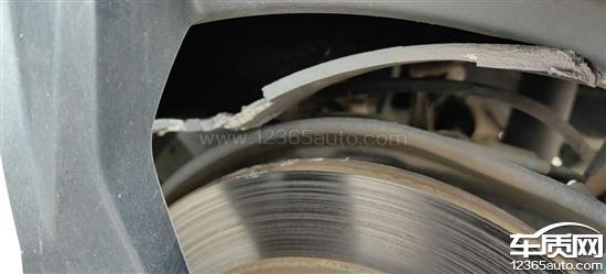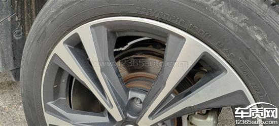 高速行驶途中左后轮胎爆胎,钢圈裂掉,刹车盘损坏,幸亏自己操作得当,没发生人员伤亡。