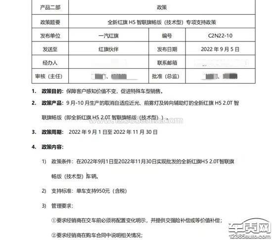 本人于2022年7月15日盲定红旗全新H5,交了2000预定金,于当月30日到当地指定经销商提交了定金5000元,因为当时厂家流传出不及时下定8月提不到车,盲定权益直接取消(霸王条款),并且打电话给厂家客服却得到含糊不清的回答。问题于9月1日发生,我们这些盲定客户得知厂家减配旗畅版本的消息并且在没有经过我们盲定客户同意下强制减配。一直到今天9月7号,各地4s店才陆续给出回复,并且依然存在不一致的说法,有说补偿1000元,有说送交强险,更有甚者居然说没有任何补偿,后来我再一次联系了厂家客服,得到的答案依旧模棱两可,只有减配是确定的事,至于赔付却需要我们咨询当地经销商!从减配事件开始,厂家就一直躲在暗处,所有问题都推给经销商,并且也没有任何发文告知,完全将我们这些消费者当做傻子看待。伤了我们成千上万名喜爱红旗支持国产品牌的中国人的心。对比于同时下定甚至下定比我们还晚的车友,他们提车比我们快,车也没有减配,这是凭什么,这公平么?现在又得到消息如果不提减配车,本月月底权益取消!再问你红旗,你凭什么如此霸道?国人真就可以如此脚踏,你的粉丝,你的消费者真就可以如此侮辱么?雾灯在你红旗那倒成了装饰物件一样可有可无,倒感觉优惠1000是我们消费者占了便宜。可是你能体会到那些开车环境差就是需要你这减配的雾灯的客户么?我们盲定客户不需要减配的车!我们盲定客户不应该在你们生产不出来车的情况下将责任推给消费者!不要颠倒黑白!不要做一个甩锅者!