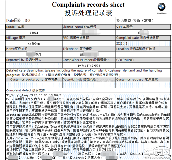 投诉编号:【812303】 投诉时间:2022-09-13 09:01 投诉品牌:华晨宝马 投诉车系:宝马5系 投诉车型:2020款 530Li 尊享型 M运动套装