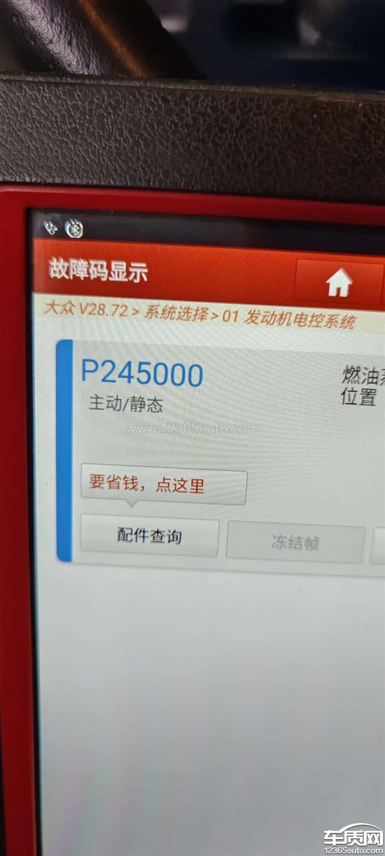 发动机故障灯亮,去专业的维修站检测,故障码245000,需要更换燃油泵,我车没到三年,在保修期,不符合三包法规定,而且进店要二百检测费,要六百维修费,我对辽宁营口上汽大众收费表示不认可,对他们服务态度表示不认可。