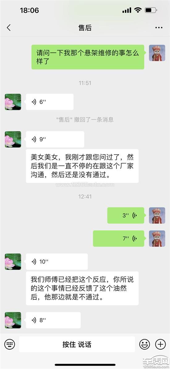 本人于2020年6月在扬州凯迪拉克购买一辆铂金版ct5,2022年2月车子跳悬架故障码,于是联系4s店,但是并没有检查出来什么问题,到9月份故障码跳动频繁,于是再联系4s店检查,检查出来问题是前面两个悬架漏油。车子目前还在质保期内,厂家拒绝更换前面两个悬架。而且车子一直有异响,但是这个不妨碍安全驾驶,我并没有什么特殊要求,只要求厂家更换这两个漏油的悬架。麻烦各位领导帮忙处理,谢谢。