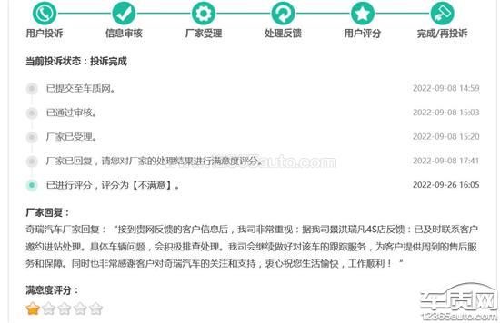 投诉编号:【820444】 投诉时间:2022-09-26 16:15 投诉品牌:奇瑞汽车 投诉车系:瑞虎8 投诉车型:2020款 290TGDI 自动 豪华版