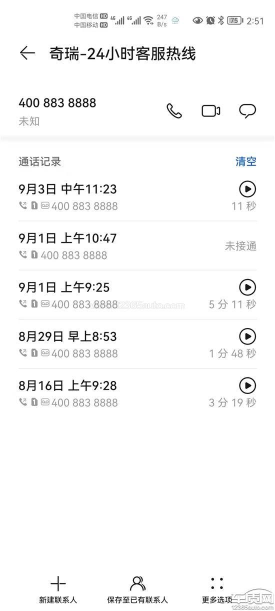 这就是奇瑞售后,不管是打电话还是网站投诉都说已经有4S店联系我了,但实际情况是2个多月了从头到尾根本没有人联系我这个灯的事,不管是电话还是回复都像放个屁一样,放完就好了,没有后续。感觉奇瑞厂家对地方4S店的控制为零,4S店想怎样就怎样,奇瑞对它一点办法没有,买奇瑞汽车的祈祷你的车最好不要出问题,否则奇瑞的售后会让你见识到什么叫无奈、垃圾。自8份初发现自己车大灯进水后,因不影响开车,所以一直到8月3日才到4S店检查,4S店说当时没说什么,说申请灯更换,但11号突然有个挂着东风厂家的微信加我,说厂家让先放干燥剂,我不同意,因每天早上水气很重,晚上好点,明显是大灯密封不行了,属于质量问题,我要求索赔更换,他们也不回微信,微信聊天时也基本是爱理不理那种,于是我于8.16号至9.3号先后打过4次奇瑞厂家投诉电话,反应这个事情,奇瑞客服每次说好的,我们会及时反应然后联系您,然并卵,四次电话历时进20天了一个毛电话都没接着,也没说要怎么解决,实在没办法了,才像车质网投诉了。