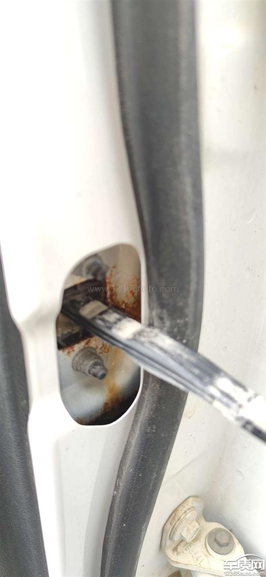 下边梁全部锈穿,车门生锈关门费劲,雨刷器两个全部掉漆。
