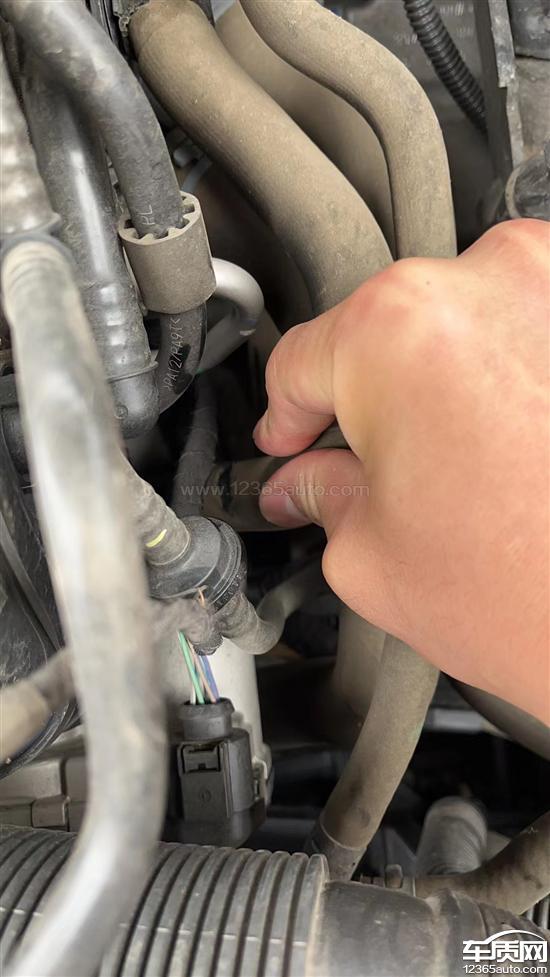 节气门线束与水管干涉摩擦水管造成水管磨损,磨出一个口子。