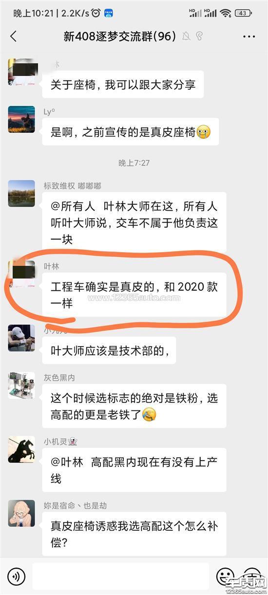 标志新408预售宣传时是宣传真皮座椅,展车到店看车,销售也说是顶配才有真皮座椅,宣传都是真皮,欺骗消费者不懂,仿皮混搭当真皮宣传做卖点,可恨,实际座椅只有坐地打孔部位的真皮的,其余部分是仿皮的材质,要求补偿。