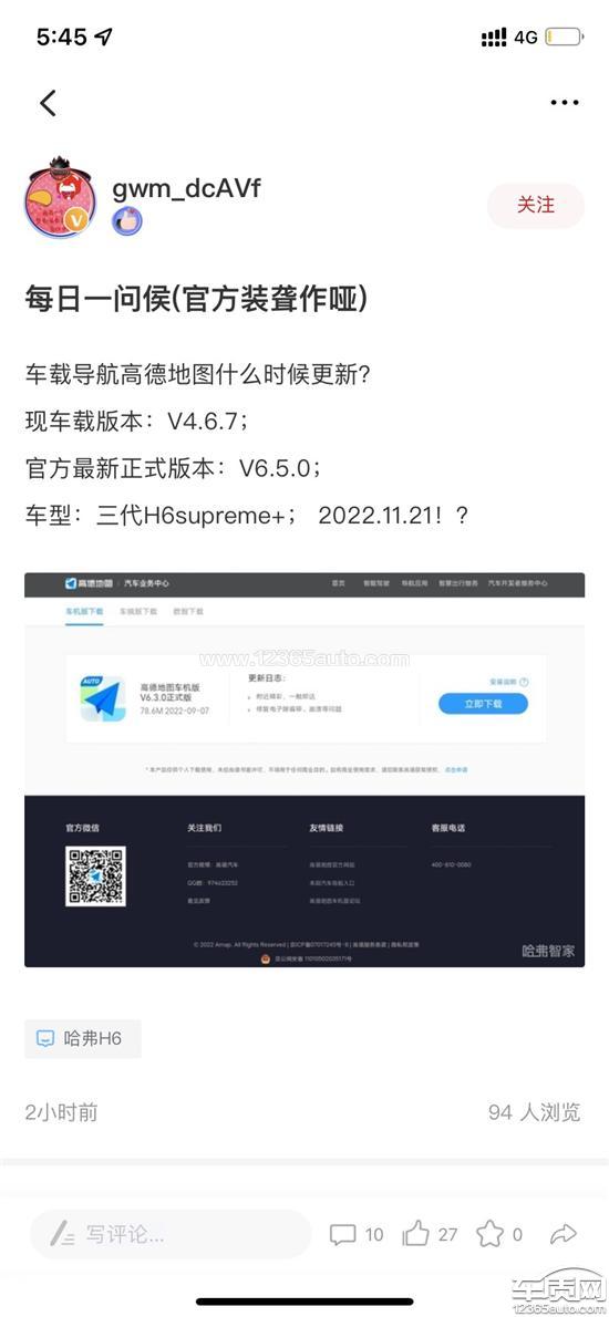 这台车从上市到现在厂家都没有明确表示过高德地图给不给更新,到目前为止已经2年多了,而现在厂家还是没有明确态度说明给不给更新,和视频宣传不符!涉嫌销售欺诈,哈弗厂家也问不到明确态度!甚至电话咨询厂家,到底给不给更新,也不给出明确表示,卖车的时候或者宣传的时候并没有说不给更新!现在作为消费者,连最基本的知情权都无法给予!望车质网不要被公关,公平公正公开处理此问题!