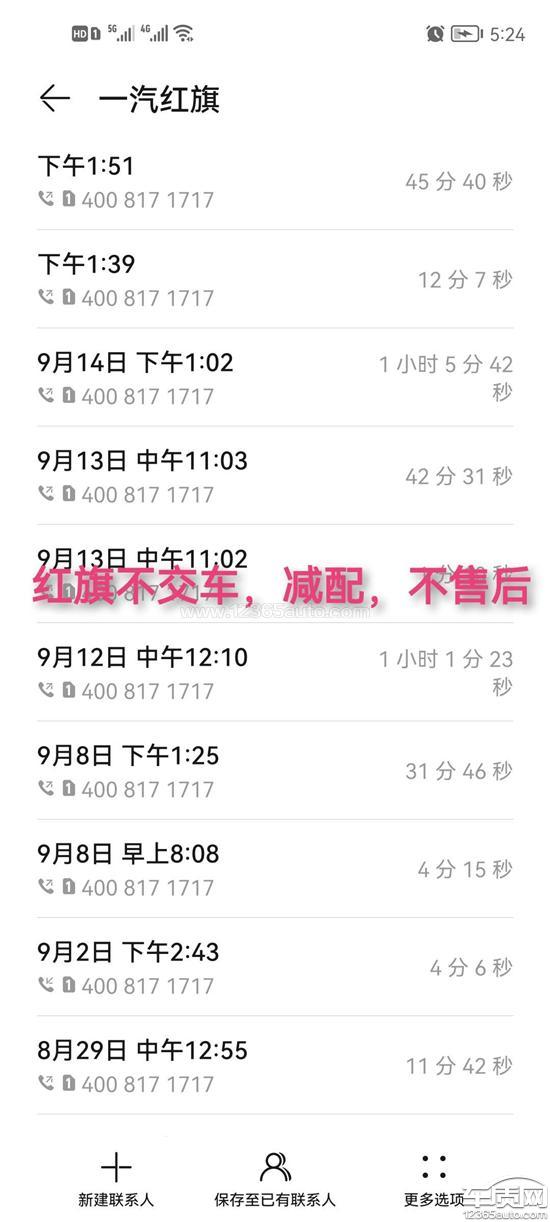 投诉编号:【847350】 投诉时间:2022-11-24 12:35 投诉品牌:一汽红旗 投诉车系:红旗H5 投诉车型:2023款 2.0T 自动 智联旗畅版
