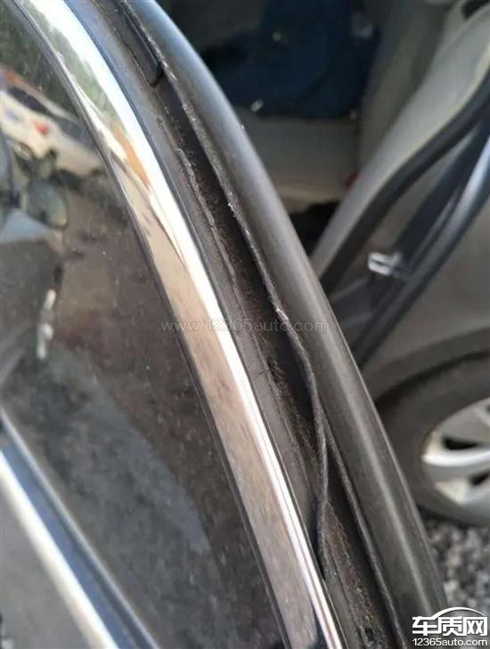 车门及车窗胶条老化严重发粘断裂漏水,密封性能较差,胶条质量差。