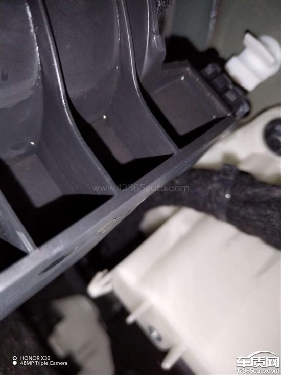 几月前开车时经常听到有水在晃荡的声音,一直查不出原因,一直以为是自己车上放了矿泉水的原因,之后几个月多次故障报警,按钮开关也时有失灵,4S店去了多次始终好好坏坏,元旦期间无意中整理后备箱,打开后备厢才发现备胎下都是水,立马去4S店检查,才发现后备厢,副驾驶座前后底座有大量水,约10公分左右。