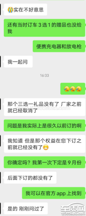 虚假销售:9月13日订车,先后被迫3次改单,销售始终承诺购车赠品放电枪,快充,话筒3选1,直到购车1个半月后才反馈没有赠品。提车1个半月承诺赠送的电卡仍无回应。车内严重异响,而且主驾座椅弹簧才使用1个月就出现塌陷。
