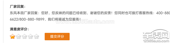 东风本田厂家回复:您好,您反映的问题已经收到,谢谢您的反馈!您同时也可拨打客服热线:400-880-6622/800-880-9899,我们将竭诚为您服务!