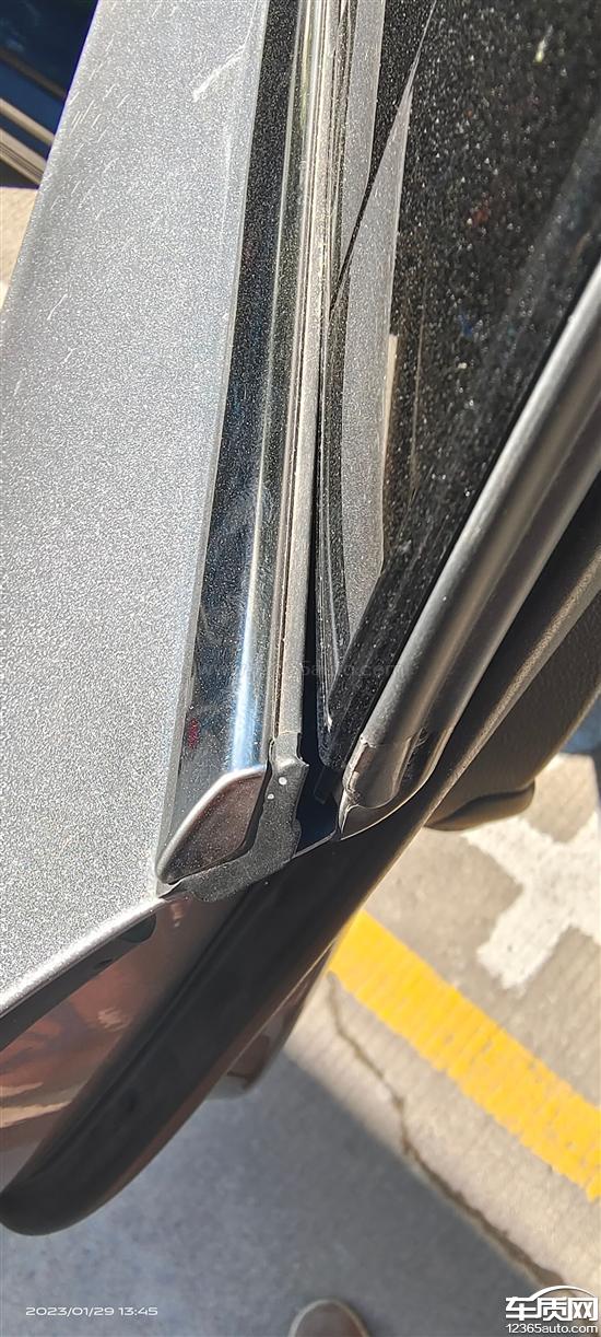 左右后车窗玻璃压条变形翘边,工艺差质量有问题。