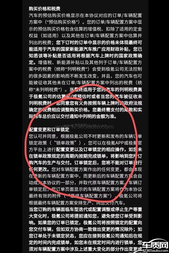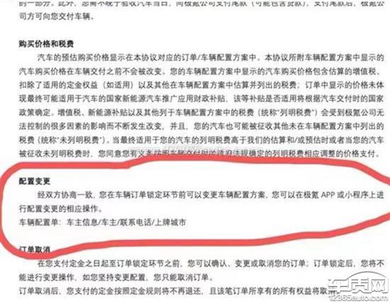 极氪001厂家单方面更改合同不履行权益,单方面修改订车合同不予通知,被发现后不予处理且不退还订车订金。