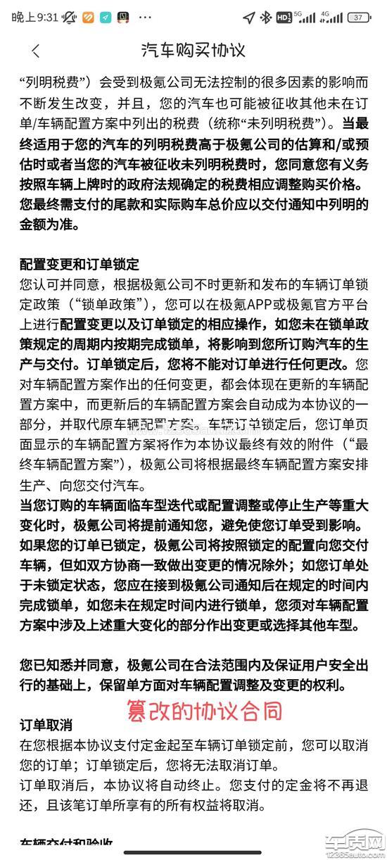 极氪为了打消消费者购买疑虑,曾一直宣传下定金5000元就可以享有全系整车终身质保和当前订单价格优惠政策,并且不限制提车时间,可以随时修改上牌人信息,甚至想过几年再提都可以。并且他们销售人员和官网官方发布信息一直长时间这样宣传强调。从2021年至2022年12月31最后一天还在这么宣传。但是仅仅过了一晚,在2023年1月1日就直接翻脸掀桌,强行直接让消费者必须在6天内选择,1.保留 2022年及以前下。单的权益必须3月份完成购买汽车,2.把权益改成23年最新权益。不能终身质保及其他优惠全部没有了,找律师看过合同,存在合同单方面私下变更制式合同。且合同写的是协商更改配置,并没有说变更权益。3.用户根据自身情况进行锁单,现在得到的信息是1月6号除了选择权益之外还会自动默认锁单,当初承诺的是保留订单,9月之前的可以想什么时候锁单选择配置和信息都可以,现在突然改变根本性政策非常不合理。并且在今年一月多次修改定金合同,新增了大量霸王条款,例如极氪不用承担任何违约责任。我们认为极氪汽车存在销售欺诈行为。随着大量消费者的投诉,极氪官方又发公告表示暂时停止侵犯消费者的权益。诉求:极氪在2023年1.1号时强行更改合约,用格式条款试图吞没客户定金权益,不然就在限定时间内提车已经构成了强买强卖,让我们对此品牌已经极度失望 要求解除合同,停止侵犯权益。