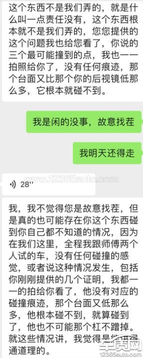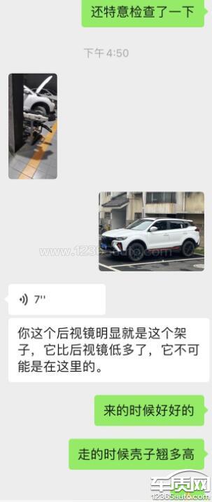 我今天开到宿州富源4s店更换后备厢锁块,售后验车没有什么异义,我接车的时候发现左后视镜碰坏了,然后查他们监控,发现监控有盲区,看不到整车试驾的过程,4s店拒不承认且态度强硬,她们没有证据证明这辆车不是他们损坏的,但是我们来的时候反光镜是完好无损的,到接车的时候发现反光镜损坏,这怎么解释,全程都是他们技工师傅驾驶车辆,如果说他们不承认,就把这辆车的全程监控录像发出来。