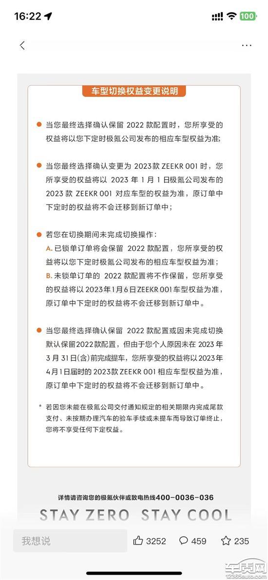 022年7月下定极氪001,定金5000。诱因是极氪全网宣传7月份之前下定可锁定极氪001全系终身质保权益,并且无锁单时间,未锁单期间可以切换极氪001全部版本以及上牌人。本着对改品牌的喜爱和信任,本人在线支付定金以保障以上权益。极氪在2023年1月1号未与我取得任何联系的情况下,通过公告形式号称推出2023款001,并强制我们老定金客户要么在他指定时间(3.31日)内选择2022两的车型保留以上权益。要么选择2023款则只能失去以上权益;与此同时极氪将当时7月份的合同细则进行了私下修改。我认为极氪违约在先,现只能要求开通退款通道,停止侵害消费者权益。