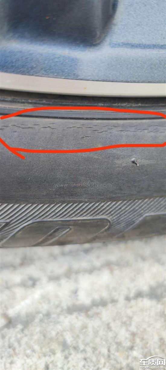 左前轮有不同程度的裂痕,其他三条轮胎未出现裂痕。