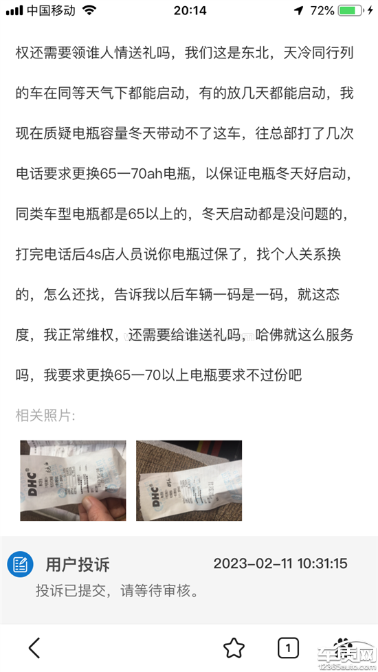 我是2021年8月买的车,一年多电瓶多次打不着火,电瓶检测不行了,在保内4s店左托右托不处理,过保了,告诉我处理不了,后我向厂家投诉4S店工作人员告诉我以个人关系托人同意给我换电瓶,这不是告诉我给他送礼吗,2月6日换了新电瓶,4s店人员也说电瓶容量小了,我也看了其它车辆都是65的或70的电瓶,我就询问厂家,可换来的是4S店人员的恐吓威胁,告诉我你还找什么,以后你的车一码是一码,以后我还敢去4s店吗,态度老强硬了,我向厂家反映一个多星期了,没一点反应,一年多点电瓶就费了,我要求换个大点容量的,厂家没反应,拿不出数据,4S店威胁恐吓消费者,不处理解决问题,我要求哈佛解决现在电瓶容量小问题及4S店人员必须赔理道歉,对以前因电瓶质量打不着火,所产生费用进行赔偿。