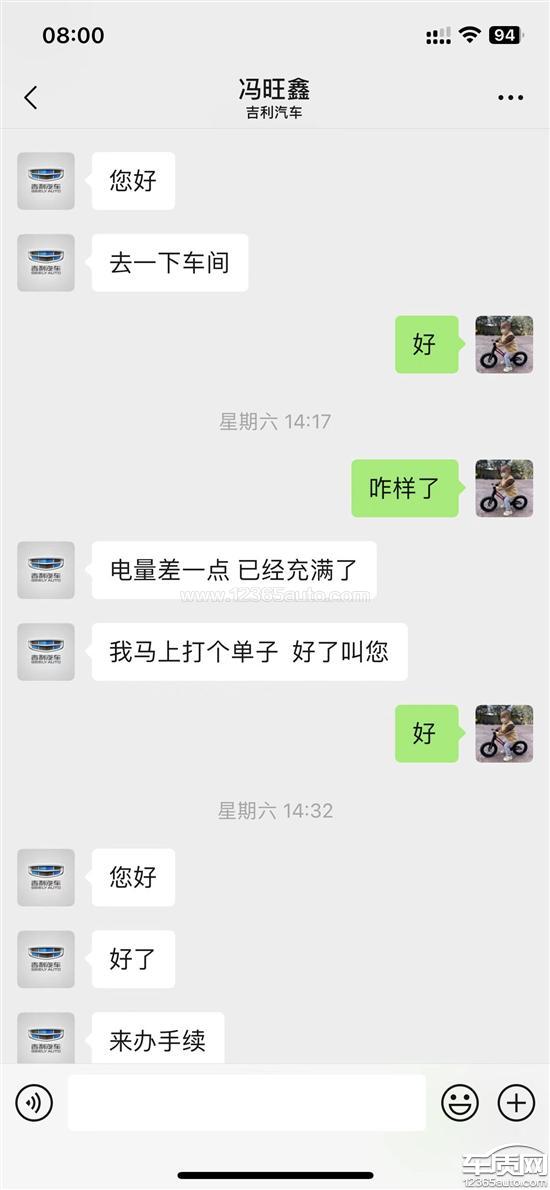 吉利汽车厂家回复:您的信息我们已经收到,将尽快协调相关4S店与您核实处理,厂家也将持续关注后续处理情况。感谢您的支持与谅解,如有疑问欢迎您致电吉利汽车客户服务热线:400-886-9888。
