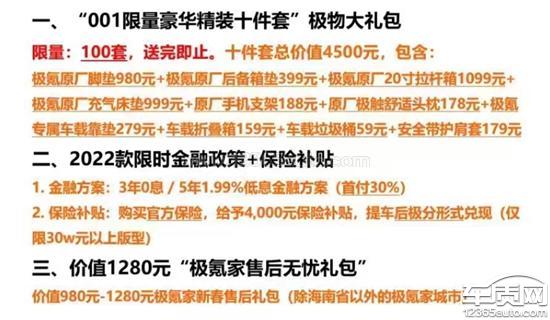 2022年12月提车的大冤种,对极氪这个品牌无感,虚假宣传,背刺老车主1、销售的说的4000提车积分没有实现,送的赠品部分还没到手。2、刚提车出新款,之前说不会出新款那么快,原合同有条款出新款提前告知,不履行合同条款。3、说23年后没有国补,没有终身质保,2023年1月份清库存什么都有,还三年免息,五年利息1.99%,折合人民币2万多,还不算那些赠品。4、400客服怠慢,已联系销售和售后服务一个多月,一直没专员进行跟进。5、欺诈,隐瞒,售后服务形同虚设。