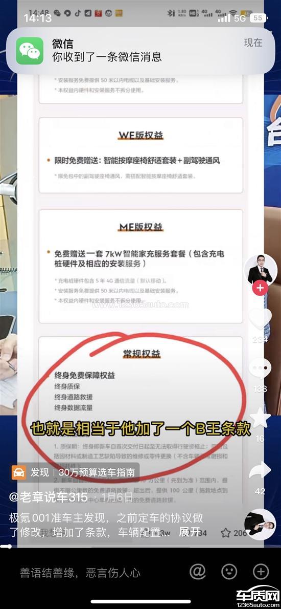我们订购的时候8月份合同宣传极氪001全系享受终身质保,并且不限提车时间,并具有修改上牌人权益,同时极氪的广告也是这样打的,现在我已知的就有1400多名车主想让极氪履行合同,如不能履行我们要求退款,这钱也是我们自己的钱,你自己违反广告法不能昧着良心坑我们消费者的定金。