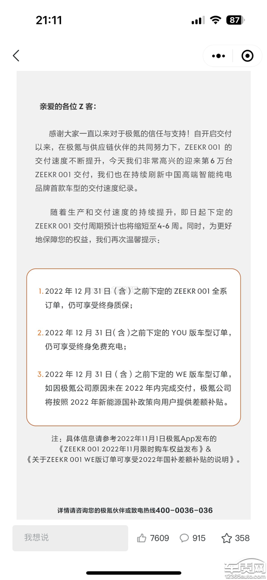 极氪001厂家销售欺诈订单权益承诺不兑现