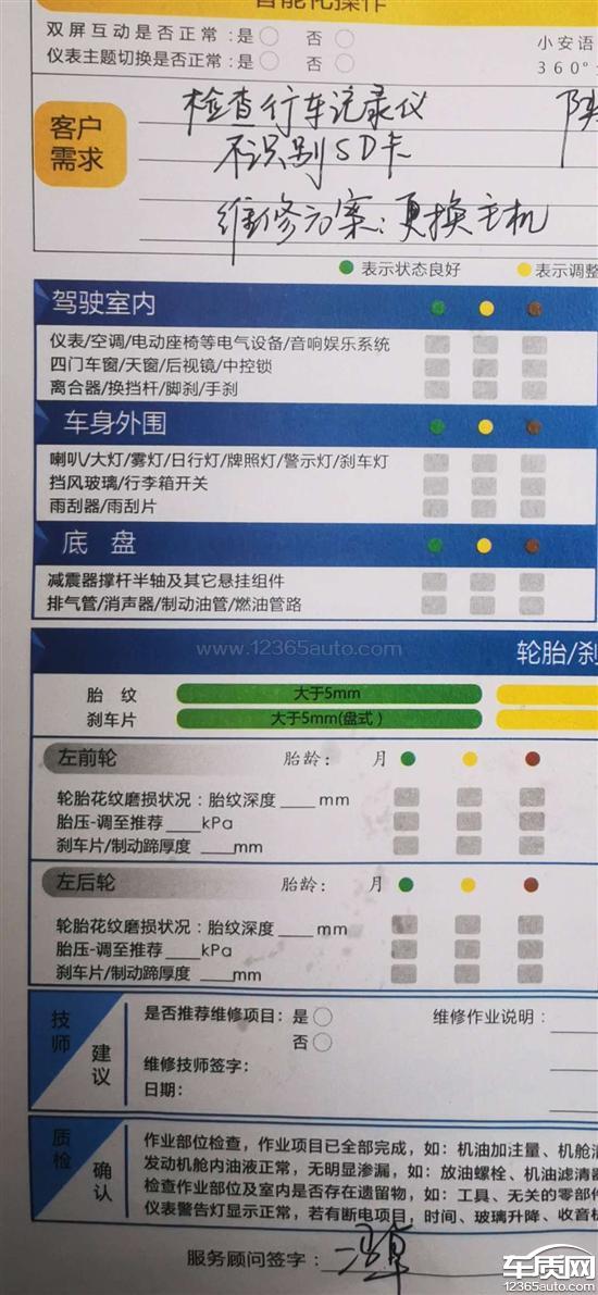 行车记录仪储存数据线未安装,主机质量问题需要更换。
