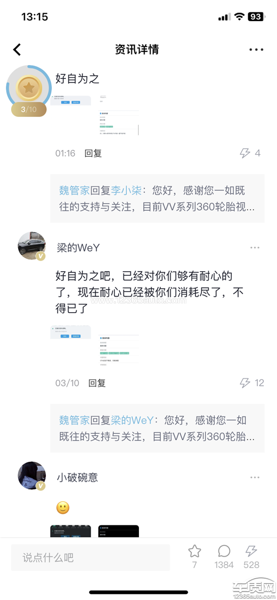 长城汽车厂家回复:您的信息我们已经收到,将尽快安排相关4S店与您联系处理,感谢您的支持与谅解。车辆使用中如需帮助,您可随时致电长城汽车客服热线:400-666-6616进行咨询、反馈,将竭诚为您服务!