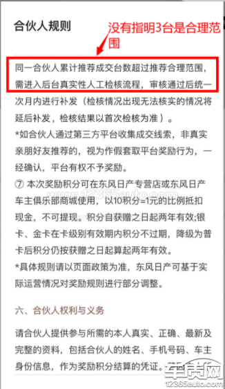 投诉东风日产厂家推荐人积分不给发放问题,还欠我65600积分,东风日产合伙人活动规则已上传图片。被推荐人提车后被推荐人第二天到账积分,但是推荐人(合伙人)每个月只到帐3人的推荐积分后不自动到帐,共计到账了9笔,还欠我65600积分,打95027客服电话告之剩下的需要人工审核问是否是我真实推荐买车才补发积分。1.合伙人成交礼双享这是一个整体不可拆分,为何被推荐人的积分到帐而推荐人的积分不到?2.活动规则没有写明3台是合理范围活动12.31结束。从1.10号我就一直联系在线客服反映这个积分为何不到帐问题,到2月份期间多次打95027客服电话,还是未解决。就在2.9号客服打电话说未到帐积分中只有四人人工审核是真实,其余全被判定为不真实,请问不真实的证据是什么?我有询问朋友(被推荐人),要么就是东风日产没有打电话,要么就是问了是否朋友推荐,被推荐人答是,未问朋友名字(也就是我)这也被判定为不真实推荐?东风日产,你要是不想给积分,就不要出这种活动来恶心人,不要跟车主玩套路。