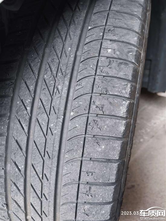 前两轮整个轮胎正面出现密集裂痕,两后轮一处都没有,(4S店解释说我开车走的路况不好造成的,我说都在市区上下班的又不是去越野的,路况不好干嘛后轮一处都没出现呢)。