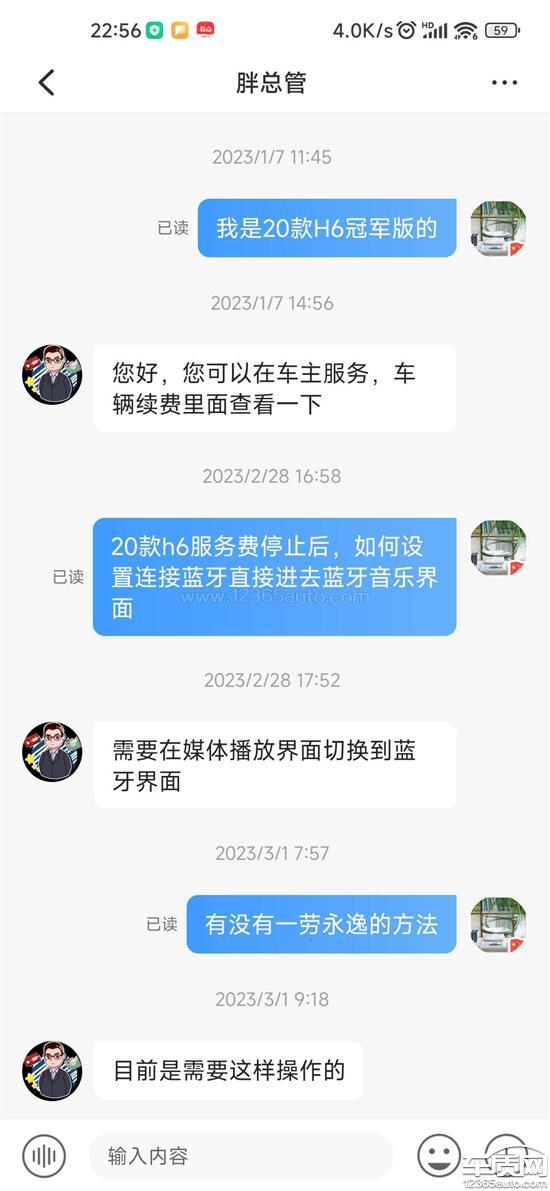 每次连接蓝牙听歌,都得去听它重复提醒续费,无法一劳永逸关闭提醒。不续费就是这么麻烦?不续费就不配使用车机?能不能把提醒给关了?哈弗胖总管都解决不了的问题,不晓得车质网能否帮解决了?