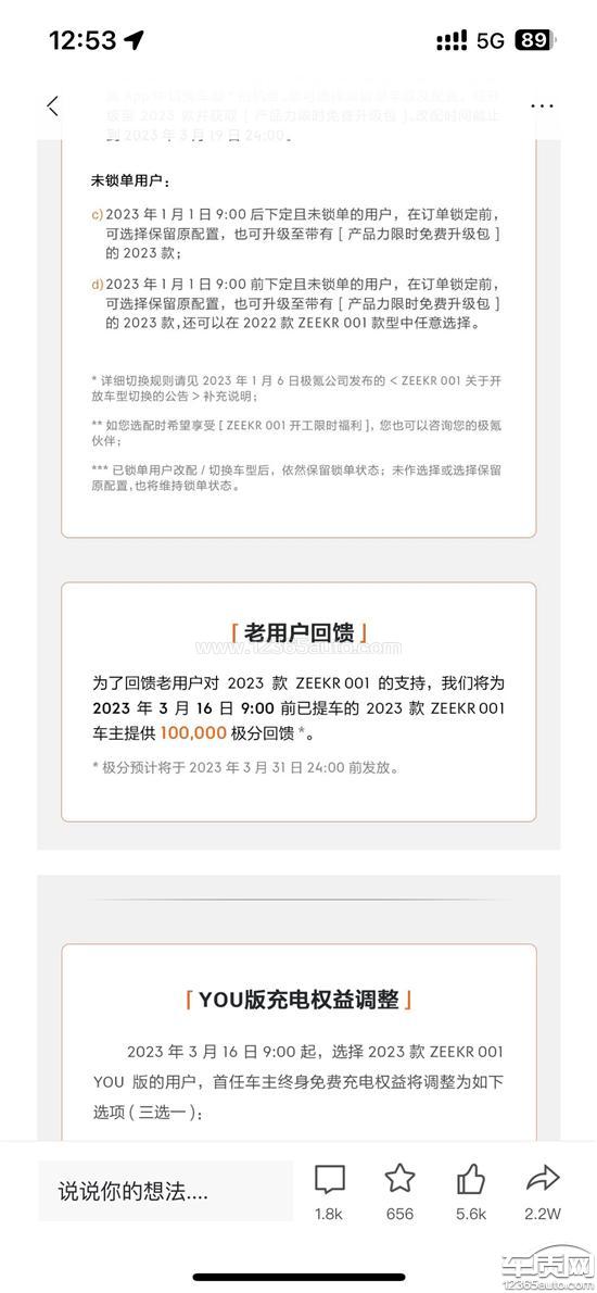 2022年订车后交付前,极氪有2023款车型众多优化变更,并没有按照购车合同约定起到告知沟通义务,导致本人在新车升级情况下购买了旧款车型。在2023年3月16日,极氪对车型做出销售策略变更时,只针对2023款车型车主做出了补偿,2022年底交付的车主并没有获得补偿。