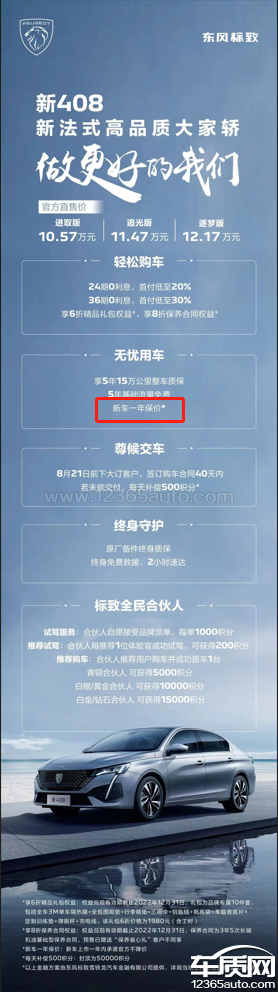 我于2022年9月份购买了神龙汽车直营车型2022款东风标致408,裸车价10.57万,落地价约11万,其中含有厂家补贴3000元,并且承诺保价一年。现在刚过半年,此车开始降价,官方宣传是直降两万,现在同款车型落地价约为10万,其中含有厂家补贴10000元。也就是说半年的时间,厂家补贴由3000元变成10000万,显然违背了当初保价一年的承诺。附件有当时宣传和现在宣传的图片。