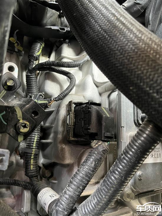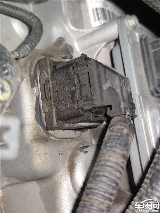 图1为一年前未打胶是渗漏情况,渗漏点是插头及周围,图2为打胶处理后的图片,打胶后插头周围渗漏有所改善,但是却转移到了插头的塑料外壳。足以证明打胶不能解决问题,是DF727型号变速箱设计缺陷,要求跟换DF733型号变速箱。