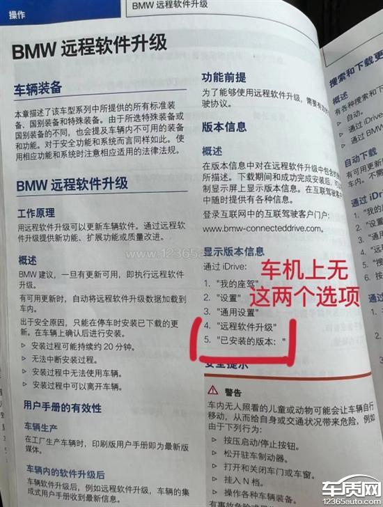我的2020款宝马x330i车型的车机id7系统存在阉割,与车辆说明手册及车辆宣传均不符合,无法远程升级,部分功能缺失,存在虚假宣传。