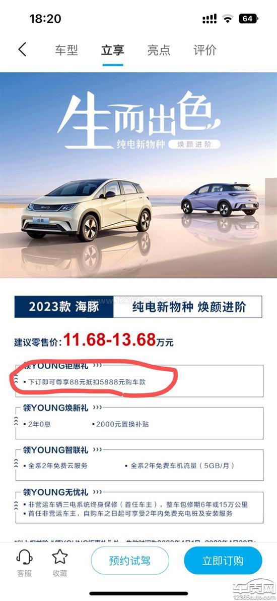 2023年3.20提车,今天比亚迪官方发通知降价,58抵5888,等于是直降了5800。提车不到一个月,损失5800,侵害到消费者财产,要求4s店补偿差价。
