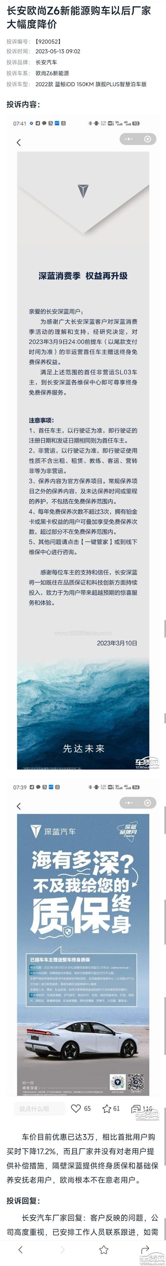 去年年底提车到现在,厂家连续降价接近4万,降价幅度达到将近20%,相当于我们每月花了5000去租了一辆车,如此疯狂降价却对老车主没有任何补偿措施,反观另一品牌降价却是主动提出补偿,同属长安的车,为什么区别对待!