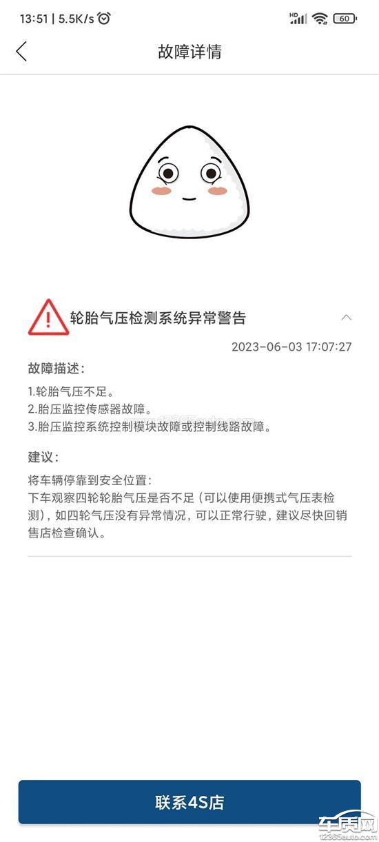 新车开了100公里胎压故障灯亮了,胎压显示屏弹出TPWS故障,观察轮胎没有明显亏气现象。