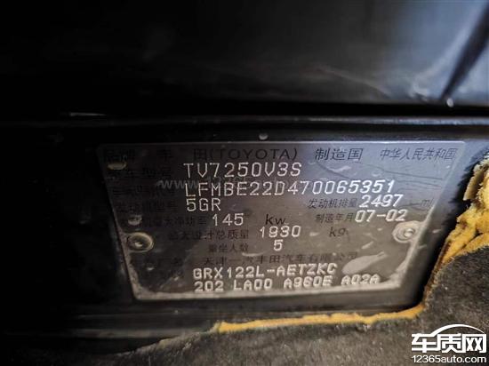 车型:2008款 2.5S 特别纪念版 新锐志 REIZ