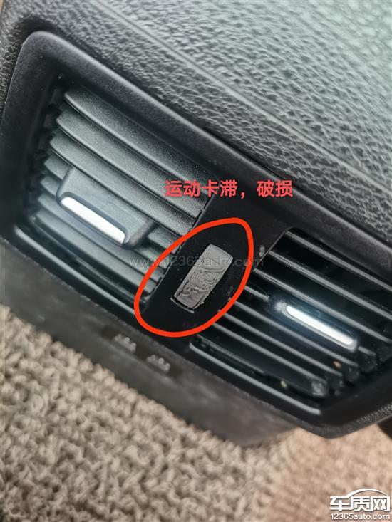 后空调出风口破损,饰条卡接不牢固,门板皮褪色严重。