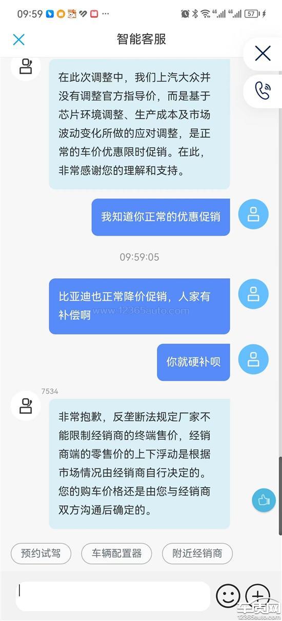 上汽大众厂家回复:关于客户的抱怨问题,我公司已安排对应经销商与客户进行沟通处理中,最终处理情况或处理结果将第一时间反馈贵网。