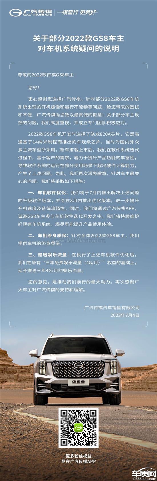 gs8车机卡顿黑屏,经过重多车主投诉后厂家发公告表示7月内有更新,并在8月发布正式版。今天7月最后一天厂家发布更新但是这次更新是退回之前版本,并不是所谓的优化。从厂家这次操作来看厂家并不具备通过软件上来解决黑屏这个安全问题,所以要求厂家从硬件上根本解决。安全隐患不可怠慢,厂家一再拖延,希望有关部门重视这个问题!