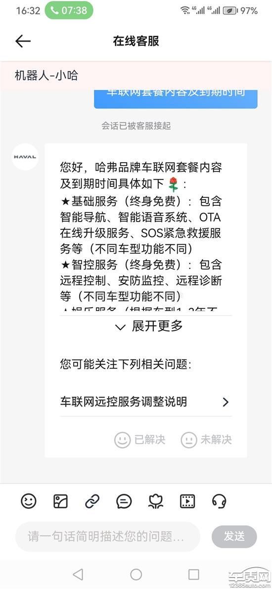 车机系统不交费不能使用2022年1月买的长城哈弗H62021款1.5t自动冠军版4s店试驾车,上个星期车机系统显示要续费才能使用车机导航,该项规定非常不合理,不能使用导航,买的电子屏幕有什么用,还不如买个收音机版本的车,希望店家(厂家)不要再损害(收割)长城汽车忠实车主利益。