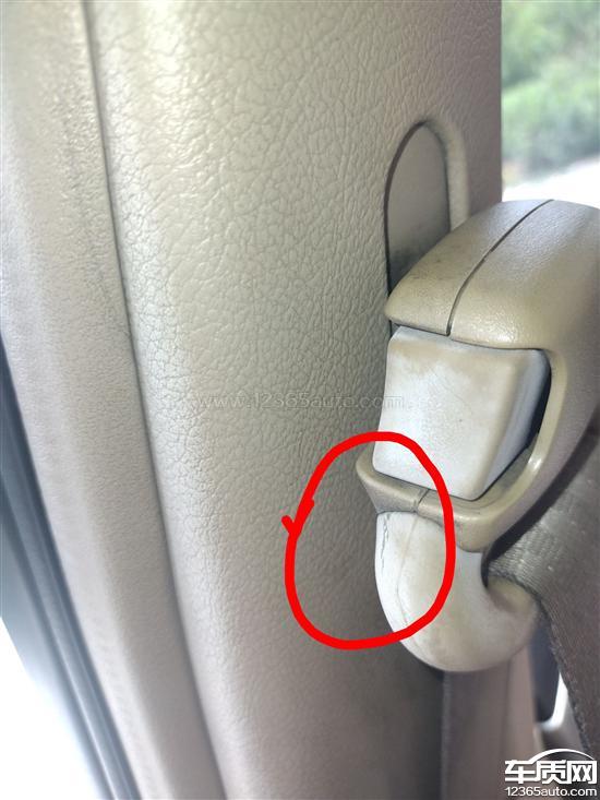 主副驾驶安全带调节扣发白开裂,存在安全隐患,此配件不属易损易耗件,正常使用无任何碰撞的情况下却出现开裂,希望厂家召回更换。曾向经销商反映,经简单检查后,被告知需向厂家申请,后无果。