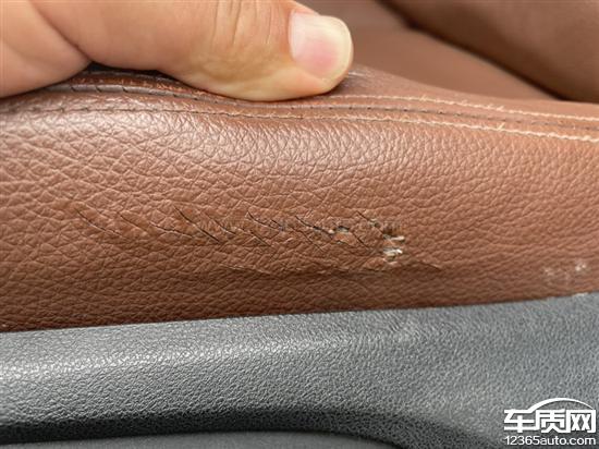 华晨宝马5系座椅开裂痕,玻璃密封条老化开裂。