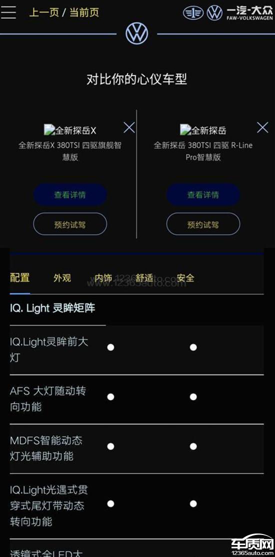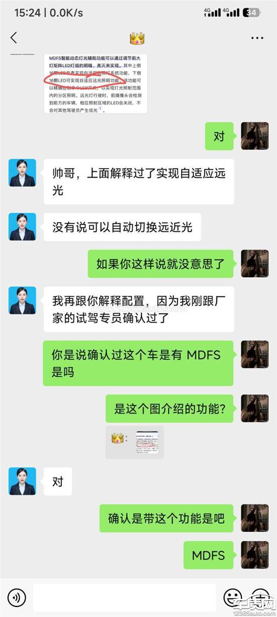 尊敬的车质网,你们好,我在2023年7月18号在乌鲁木齐全款购买一辆探岳x380顶配珠光白(车是4月份出厂的)官网宣传配置8月份查还是如视频宣传,买回去在使用过程中发现其配置不包含官网宣传的MDFS(自适应远近光灯),网上宣传探岳x,和官网上都有mdfs宣传,厂家拒绝沟通,4s店服务态度恶劣,一会说有MDFS,没有自适应远近光,然而让解释MDFS,却又不说明,最后说官网上有写实际以到车为准(视频中为官网没有任何小字告示),他们主要意思探岳x为少量存货,(用户群体小)而价格更便宜的探岳车型是大量群体用户,330顶配和380全系可以配有MDFS,探岳x上有什么配置,和官网宣传无关(意思官网文字仅供参考,无法落实),存在虚假宣传的问题《消费者权益保护法》第五十五条经营者提供商品或者服务有欺诈行为的,应当按照消费者的要求增加赔偿其受到的损失,增加赔偿的金额为消费者购买商品的价款或者接受服务的费用的三倍;增加赔偿的金额不足五百元的,为五百元。诉求:恢复探岳xMDFS(自适应远近光灯)